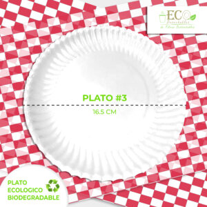 Plato Biodegradable de Cartón N°3 Blanco. Diseños Especiales, Medida 16.5 cm de diametro