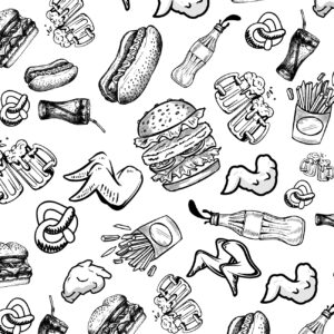 Papel Grado Alimenticio con diseño generico de alimentos gramaje de 23 g, medida 34×45 cm